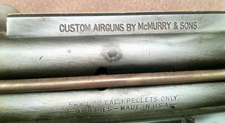 One side says, “Custom Airguns by McMurray and Sons” and the other side is engraved “Custom Made by Stan Russell.”