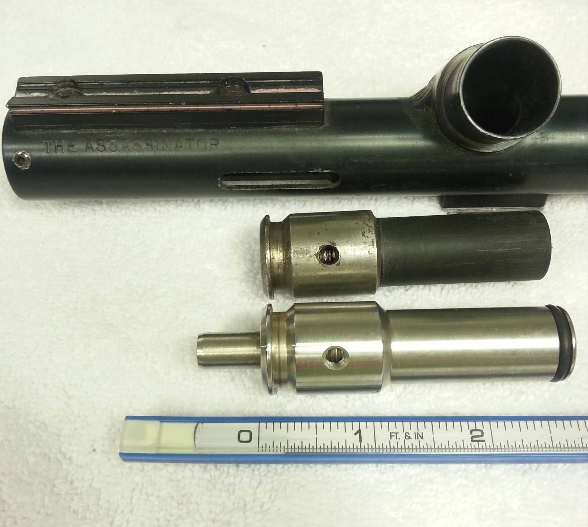 […] assassinator 2 body and pump. Used BAD shape, and missing barrel! And the Assassinator bolt here: Aerostar Assassinator body, stock bore drop bolt and Lapco Bolt – Old News Paintball History […]