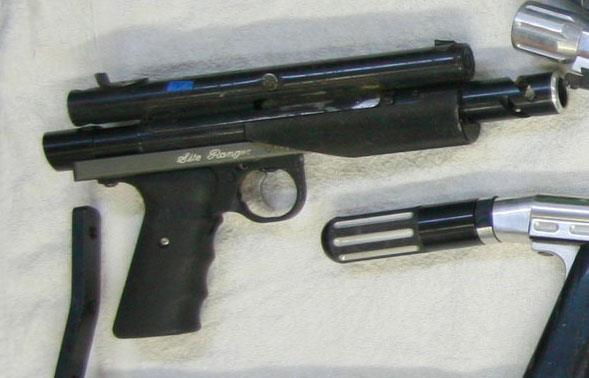 Slide trigger 007 I assembled. Shown with ranger back bottle, knurled pump. Rail is cut down in front to work with this pump handle.