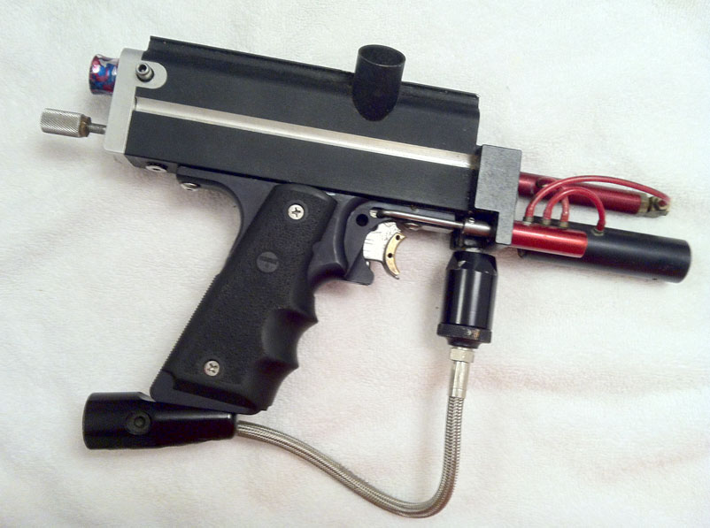 Tony plays paintball with us occasionally in Northern California and is always telling me about paintguns he worked on as the store manager for Chris Haggin at Pacific Paintball but it’s been hard to find examples of his work.