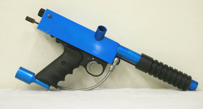 “Very cool…that blue sniper was made by Jeff Orr and was sold to Chris Haggin in about 1993. I clearly remember the day it came on UPS. I’ve played with it…My only beef was the lack of a sight rail to aim with. Chris played with it at Storewars in ’94 IIRC. Man does that bring back some memories. I can’t believe Chris sold that gun. That was a very one-off gun. Oh well, guns were pretty much like toilet-paper to him. That’s worth holding on to.”