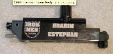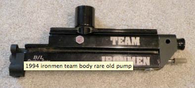 I haven’t found too many examples of the Ironmen playing with these vertical feed Autocockers and I don’t think Brahim used this paintgun much (if at all). It seems like most Ironmen in the 1991-1996 period (before Bob was voted off the team) used one main paintgun, either their nickel cocker right feed Autococker from 1994 or stuck to their plain black stock cocker (which is what Brahim used). The exception to this would be Bob Long, who seems like he is using a different Autococker in every photo.