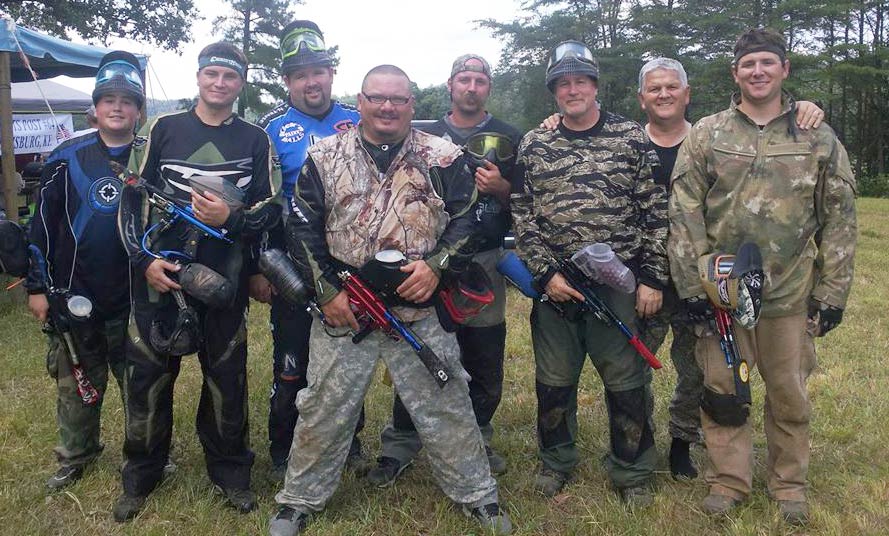 Latest on the paintball “revival,” two weeks ago (August 2014) we had a 20 year reunion for our Lightning Strike paintball team. Met at our local field, N-tense Sports in Bowling Green, KY. Some of us even played a few games. Didn’t have a huge turn out ( I estimate we had over 50 players go through our roster over the 10 year period from the team’s founding in 1994 until it disbanded/changed names in 2004. Above is a photo from the reunion. We had probably had 6 or 8 playing and the rest were former players kids, family, etc.
