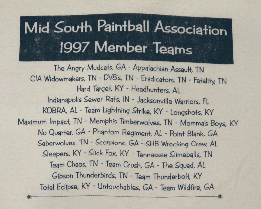 The following article was written by Chuck Link. Chuck has been a great source of information over the past year or two on team memorabilia and general paintball history from the Tennessee, Kentucky and Mid South area.