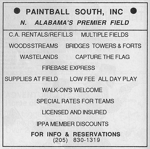August, 1989 – Paladin travels to play our first 5 man tourney, the 1st Annual 5 man Southern Open held at Debbie and Gary Arends “Paintball South” field in Northern Alabama.