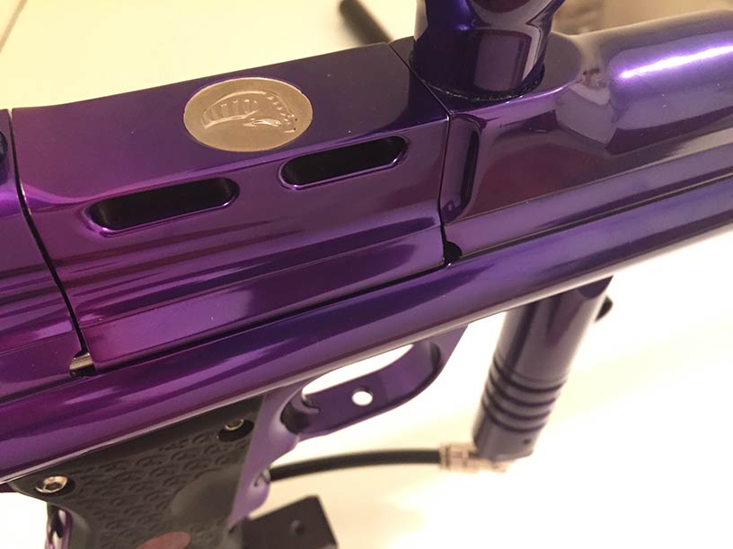 And it’s equipped with a match annodized Air America Armageddon in Purple! The revy is even gutted with the motor directly wired into the single trigger’s pull. As Chris explains in the video, a single trigger pull doesn’t activate the motor, but multiple pulls quickly will get the motor turning.