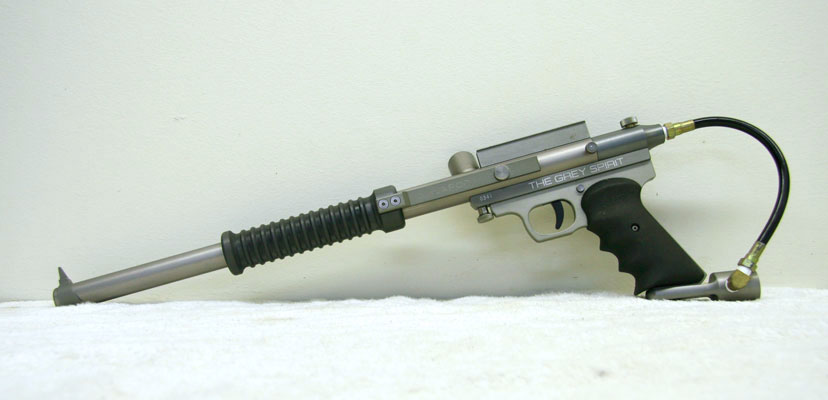 After developing all the parts for a nelson based pump paintball marker Colin integrated together his improvements and sold them as an entire paintgun, named the Grey Ghost and later Spirits, Wraiths, Specters and many more.