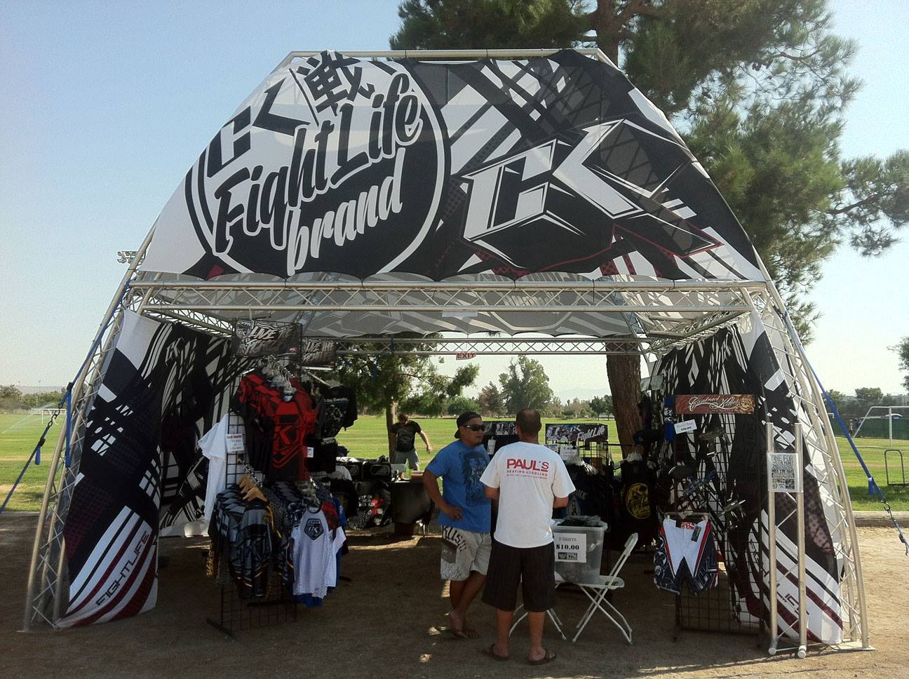 Here’s a photo of Paul and Chris Corcino from Contract Killer Paintball. Loved the sleek canopy that Contract Killer had set up and got a couple tank tops so I could work on my farmers tan.