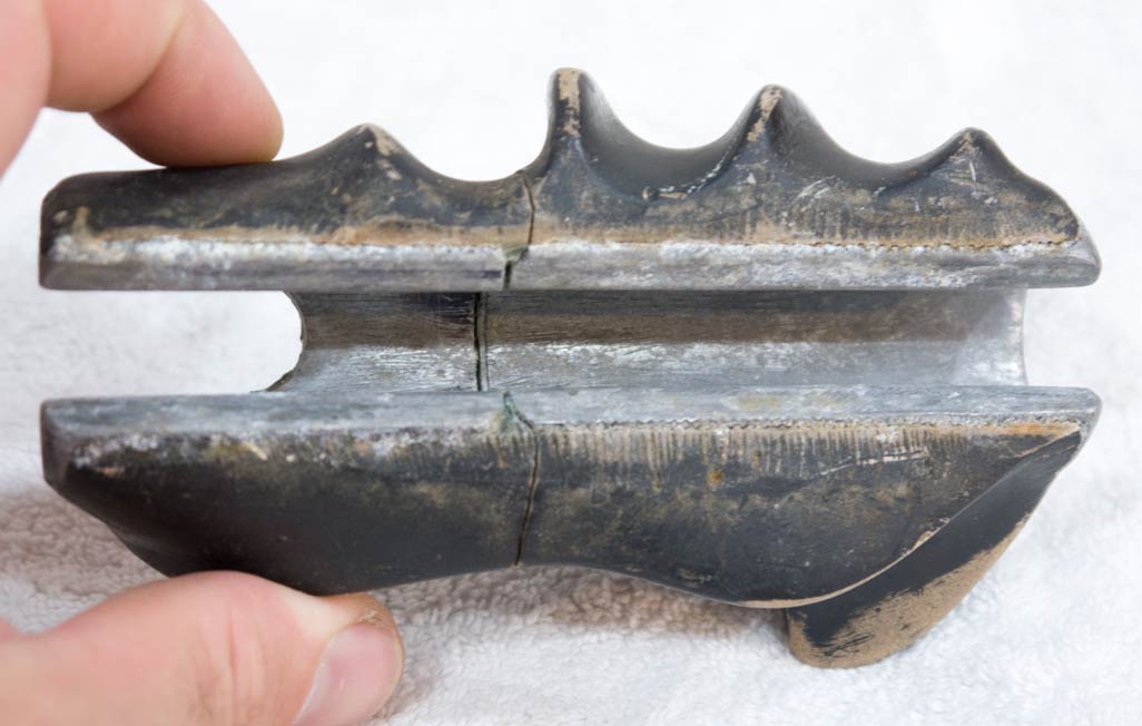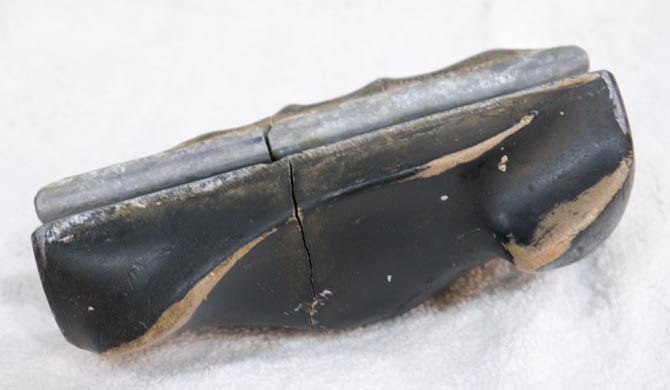 The shots above show different angles of the bondo Elite Weapon’s Battle pump. The bondo is originally brown and painted black. The pump handle base underneath is a Sheridan PMI-2, PMI- Magnum or PMI LB/SB pump handle. The Sheridan pump handle base is two piece screwed together and the crack has developed in the center of the sheridan handle.