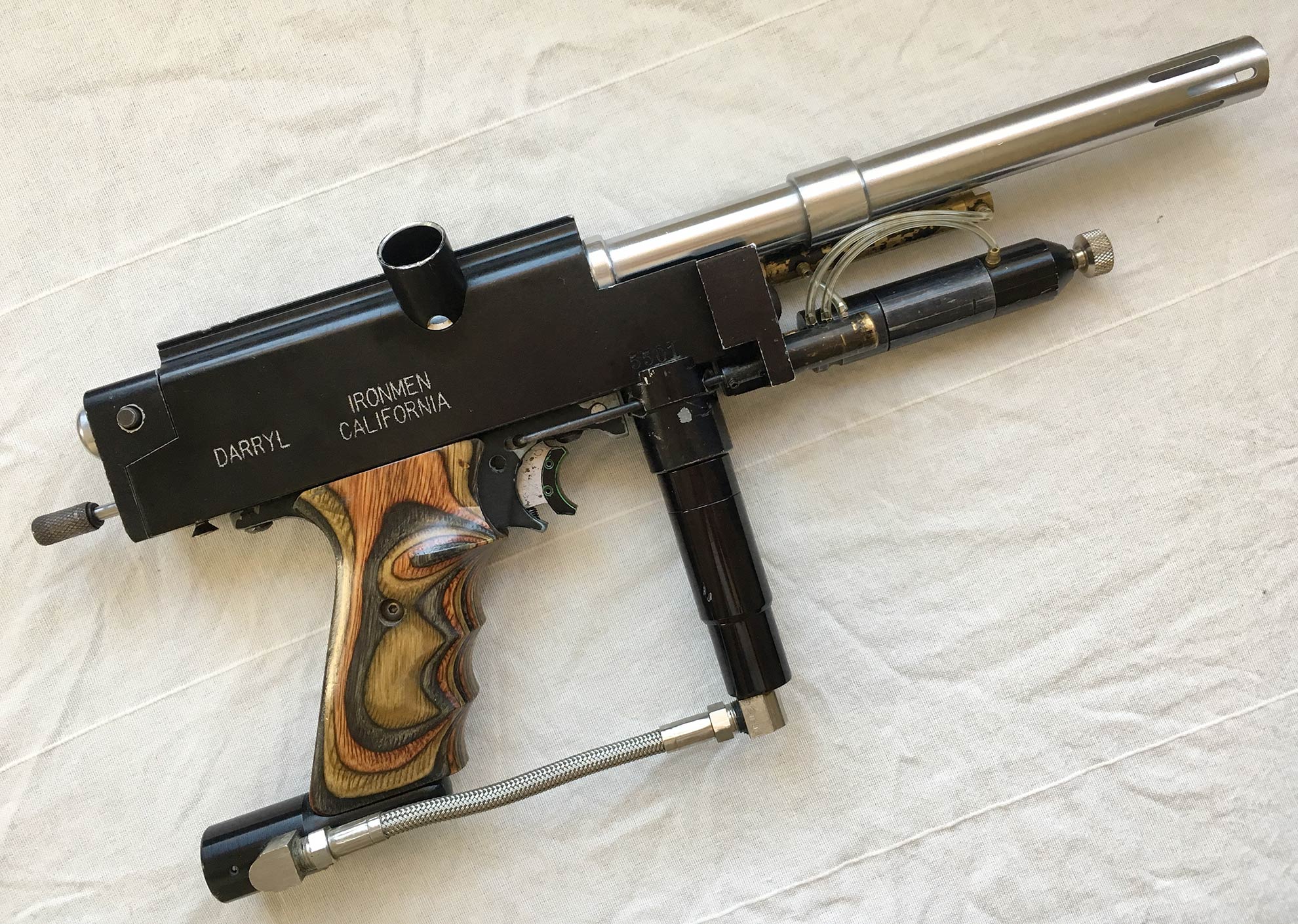 Based on Zander’s Sniper 2’s similarities, I had assumed this paintgun would have been given to Darryl as a pump, but talking to Darryl he doesn’t remember shooting any WGP pump markers on the Ironmen. He explains that he moved from his Line SI Bushmaster, now owned by Tony Meno (video above), to the Prototype Autococker used at the 1991 Lone Star Open.