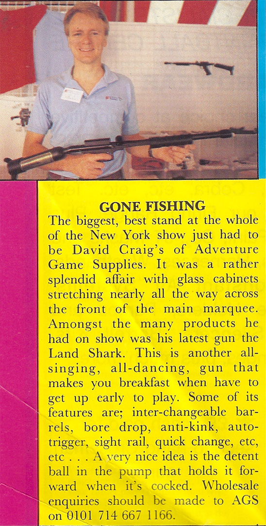This photo of David Craig, owner of Adventure Game Supplies from the August 1990 issue of Paintball Monthly, a UK publication.