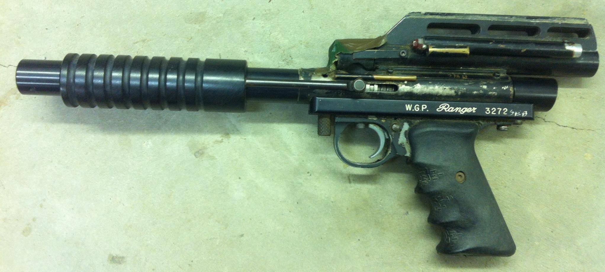 Another photo of the stock class ranger. This shot shows the ocular site attached to the side. You can SEB cut into various places on this gun. Above my fingers you can see the B from “SEB.”