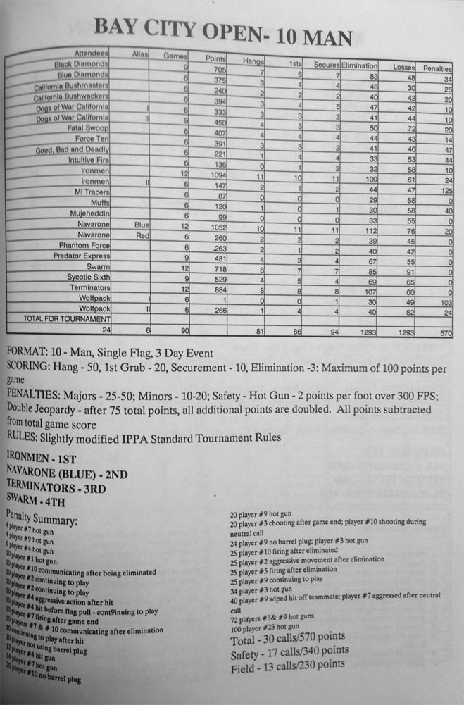 These Statistics have been scanned from the World Paintball Federation Quarterly Report, Second and Third Quarters, published 1991 by Steve Davidson / WPF Publications 1992. Find Davidson on 68Caliber.com.