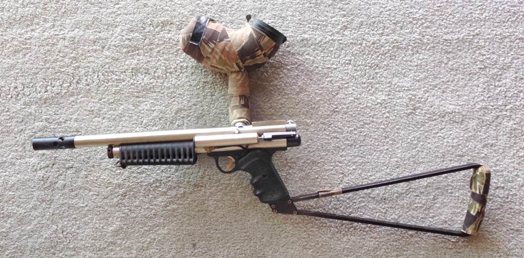 O’Connor’s Stoker started life as a .22 caliber Sheridan pellet pistol and was first converted by Palmer’s to a .68 caliber pump and then to a Stroker. The pellet to .68 caliber conversion wasn’t uncommon during that time since sheridans were in high demand and many players had a spare pellet gun around to use instead.