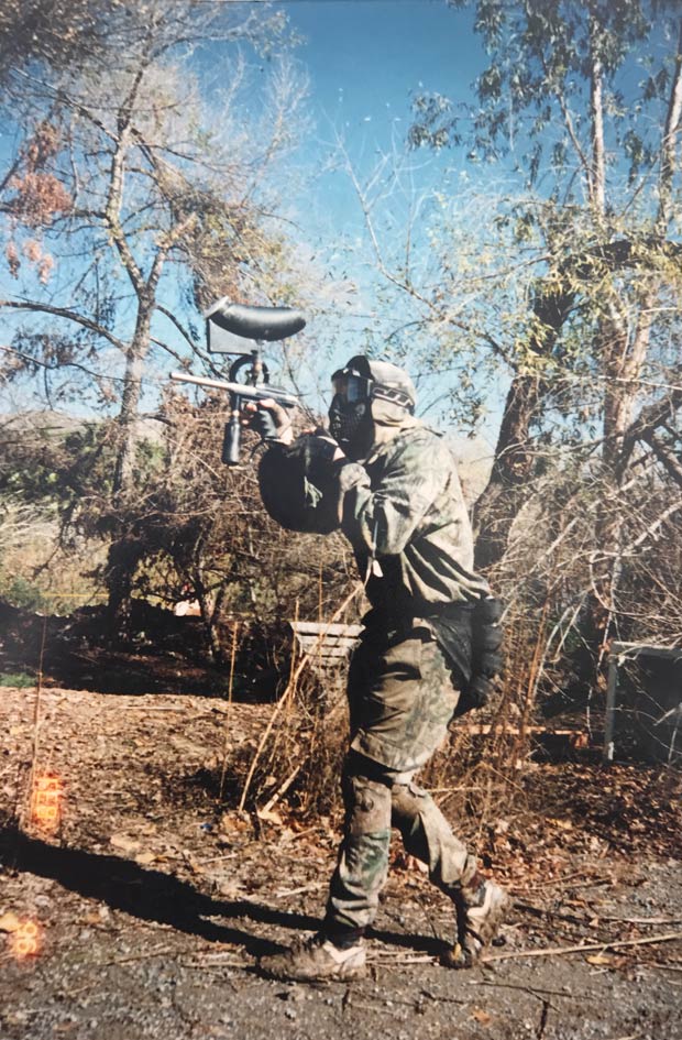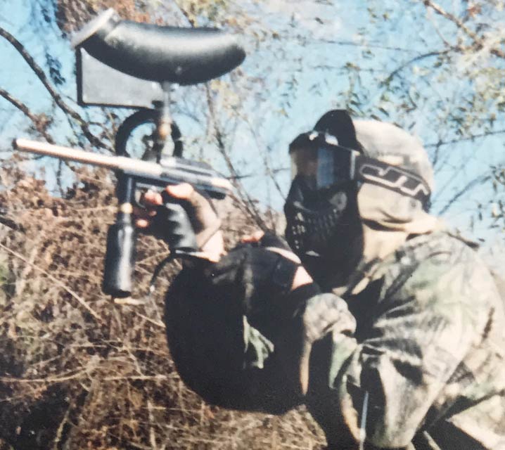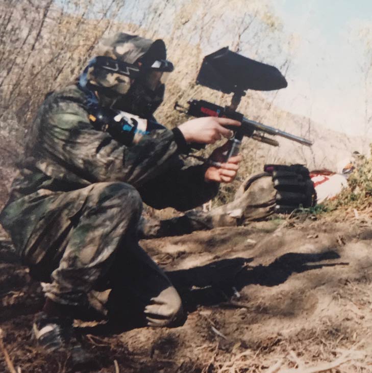 Remembering one of the large events at Field Games, John recalls, “We had spent the night because all the Bushwackers were reffing that game and we all got eaten alive by mosquitos, cause the stupid river there. There was probably six or 700 people there [for the game]. It was a huge game [and] it had to have been 1986, maybe 1987ish, right in there. It was an awesome day because with that many people they used all the fields [as] one big field. I remember when they met in the middle there was just a shower of paint because there was just so much paint flying in the air that they were colliding and you could just see a rainbow. It was probably the most awesome thing I’ve ever seen, at a paintball game anyways.” Dave “Youngblood” DeHaan also attended this game. John remembers this was his first time seeing his eventual employer, “He had that double bottle Carterized super long barrel, wearing his silver suit.”