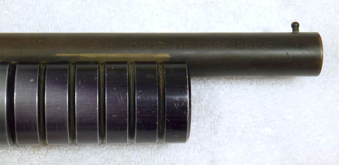 Right hand size “Lords of Discipline” engraving on the barrel of Cope’s PMI LB.