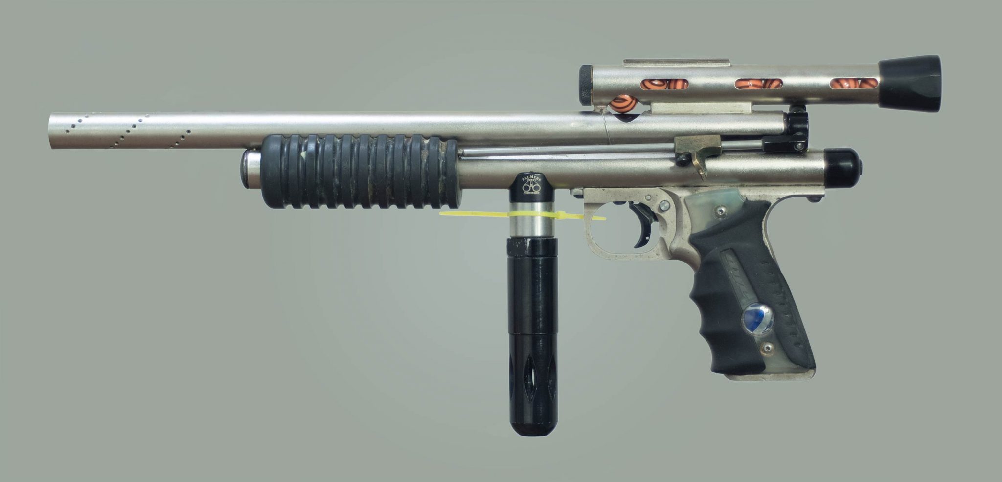 “[The Paintguns had to be run off a] 12 gram, and it had to be a twist changer, no lever changers, and it had to drop out. So it was like a Rat Attack, that was like the best you could get cause it had to drop out!”