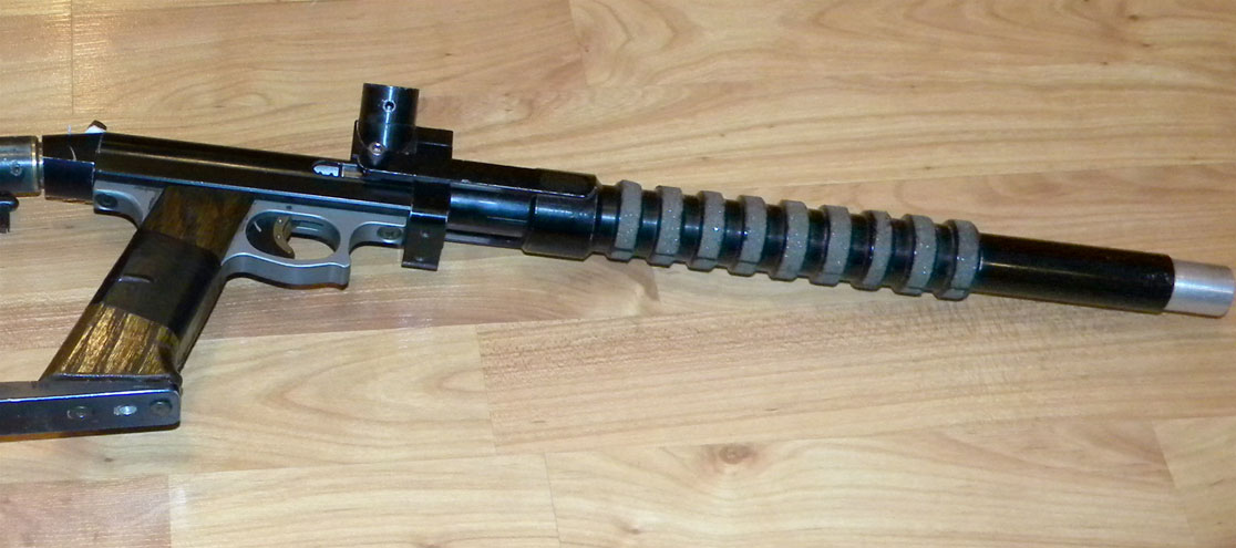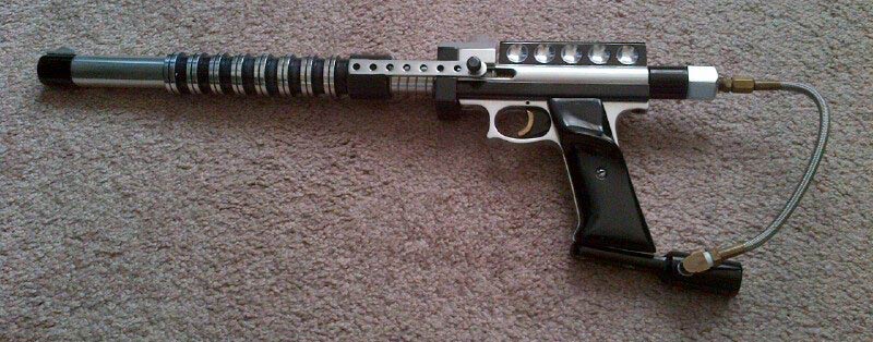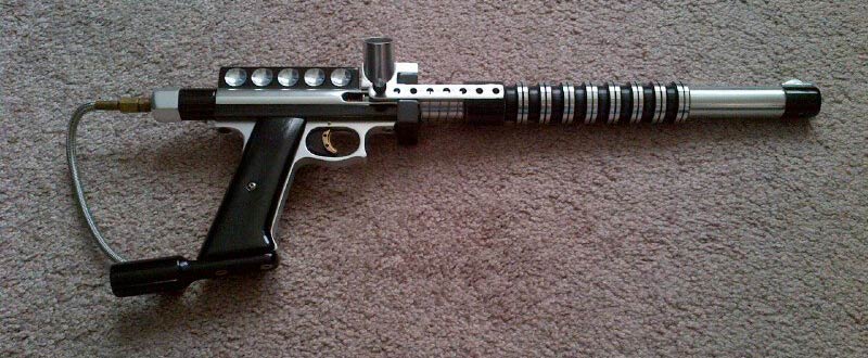I don’t know if Earon was making the barrels prior to this but around this time Earon took over nearly full production of the guns and it was at this point that this paintgun, which now belongs to Sean Chip, would have been made, using Earon Carter’s longer nelson length body.
