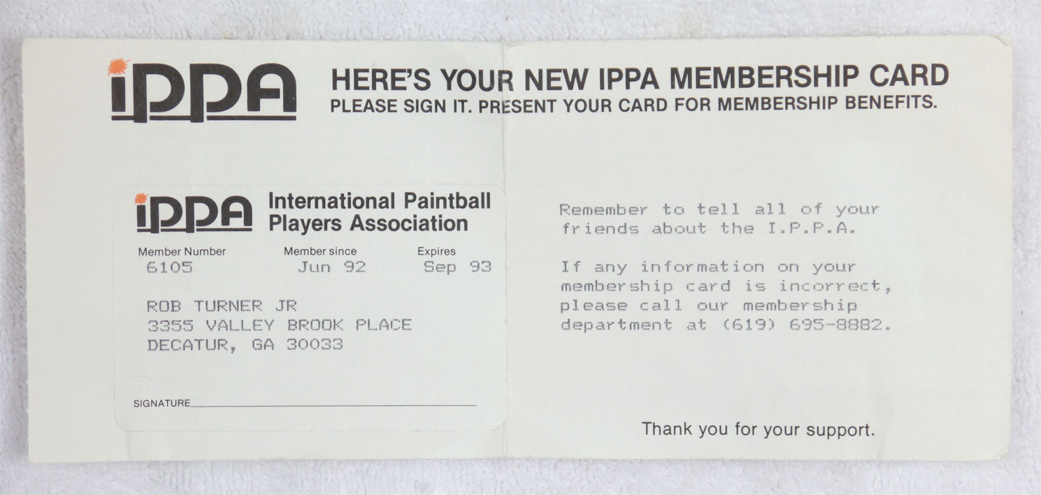 Back and Front side of Rob’s 1993 IPPA membership card. Rob’s member number is 6105.