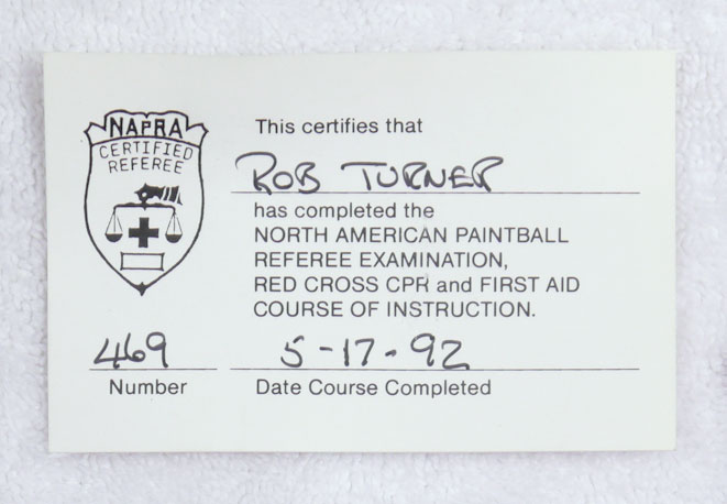 Rob writes, “Part of being sponsored [on Dragon Clan] was the responsibility to Ref one weekend day a month. During this time, my wife and I went to Disney World for 4 days, then went to NAPRA [(North American Paintball Referree Association)] training in Zephyrhills, Florida on the way home to Georgia.”