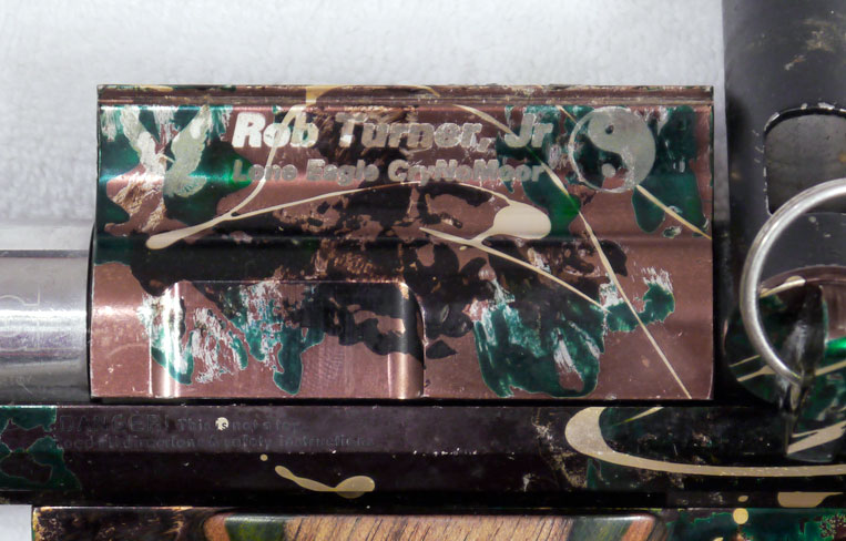It was at this tournament that Rob had the sight rail of his Minimag engraved by Proline employee and Laser Dynamics operator, Skeeter Gordy.