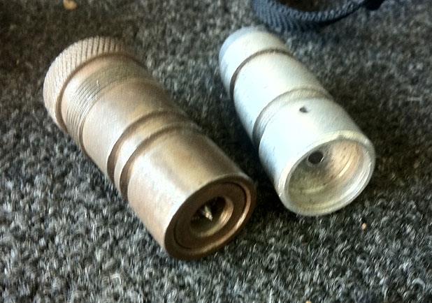 On the left is a prototype copy Sheridan made of the dual 12 gram plug. I think Tim told me that Sheridan made this plug and then shipped it to him to see if it would work. When he received it he was pissed because they weren’t supposed to be copying his products.
