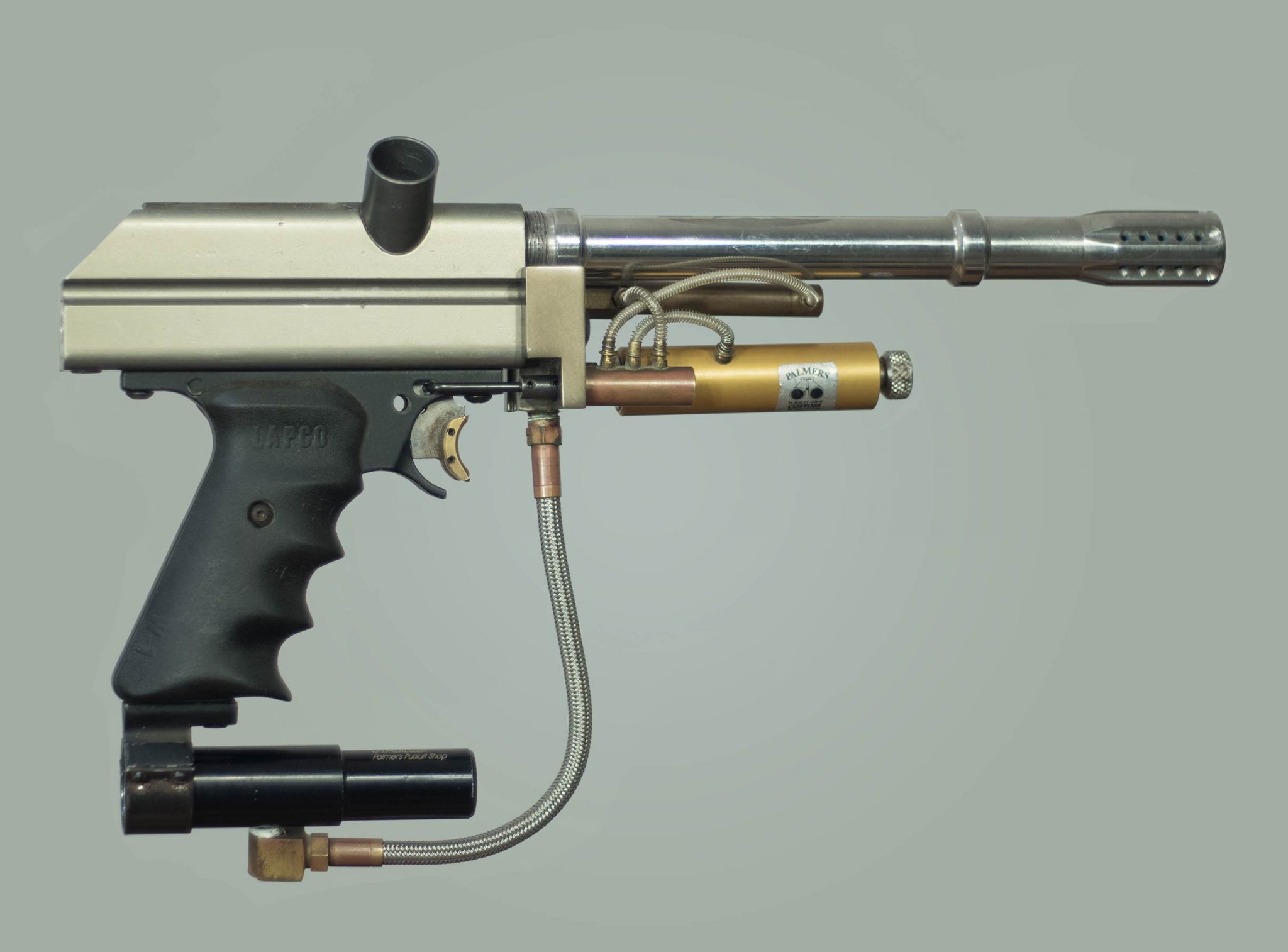 Left side view of the tiny internal cocking Autococker. I added the Palmer LPR and the Female Stabilizer.