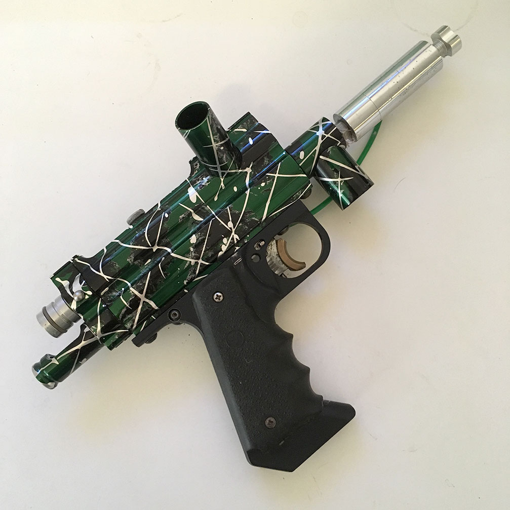 This Sterling Sovereign 1 was originally modified (reg added and a few other minor details) by Terry and Jeremy Garrett at G3PB. They also had it anodized in the British Racing Green. I have a matched LPR, trigger shoe, barrel and stock for it somewhere.