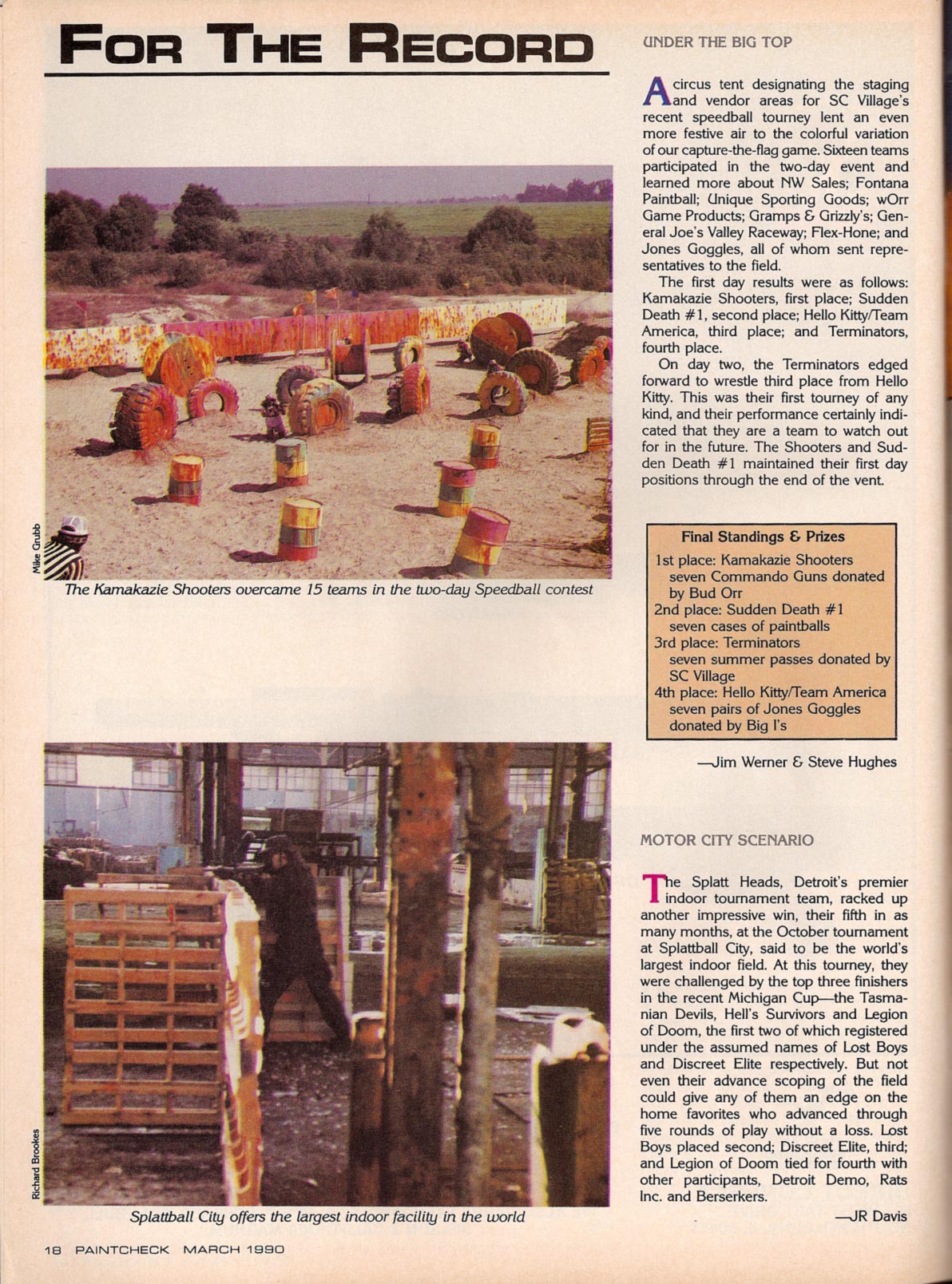 Here is a crop from the March 1990 issue of Paintcheck on an early Speed Ball tournament at SC Village and another Tournament at Splattball City in Detroit.
