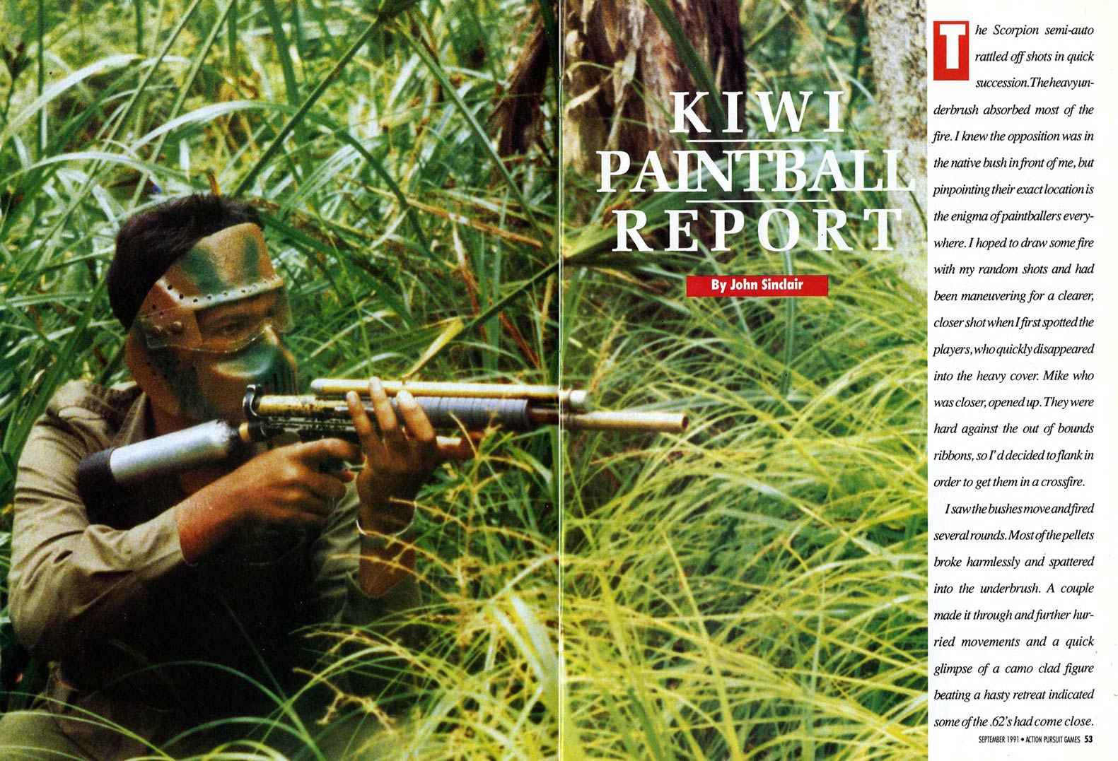 As I started researching I came across issue of Action Pursuit Games and Paintball Sports Magazine/International with articles on fields and tournaments in NZ and Australia. In those early articles, a majority ranging from 1988-92, were photos with various pump and semi automatic Pursuit Supplies International markers.