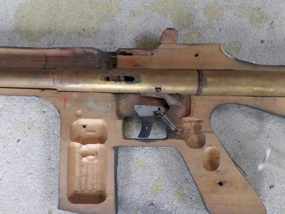 After converting the K rifles Steve moved to working with Nelson based internals. His earliest scratch built earliest full paintgun was the wooden Pursuit Supplies International M-16.