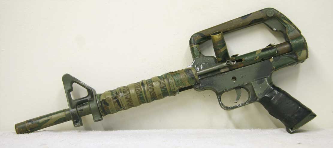 There must have been a fiberglass body version produced after the wood body version since the PSI M-16 rifle in Grant’s paintgun photo from Tactics doesn’t appear to be made from wood?