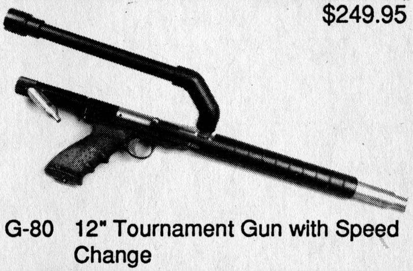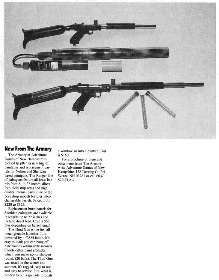 And Adventure Games of New Hampshire marketed the TAG paintguns as their Ranger Line. Their advertisement is unique because it shows both the earlier Breech Drop and later Bore Drop Nelson based paintguns beside each other.