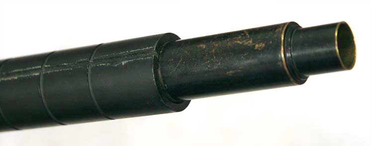 The construction of the bore and breech drop bodies are nearly identical. Both are made from an inner bore piece with an outer sleeve of brass soldered together, just past the breech.