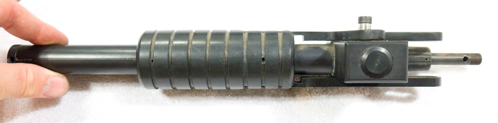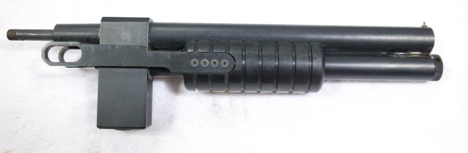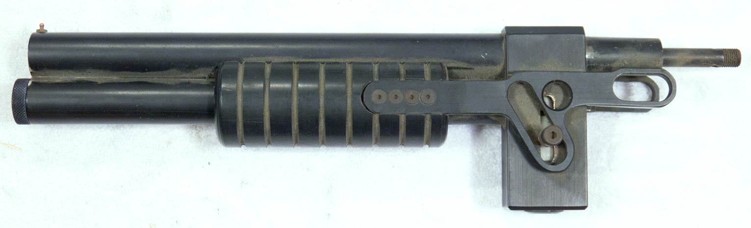 I’m also fairly sure this is the same barrel assembly pictured in APG and Frontline, the tubes are round, it uses the same PG lowertube feed plug and the front sight is a sheridan sight pin.