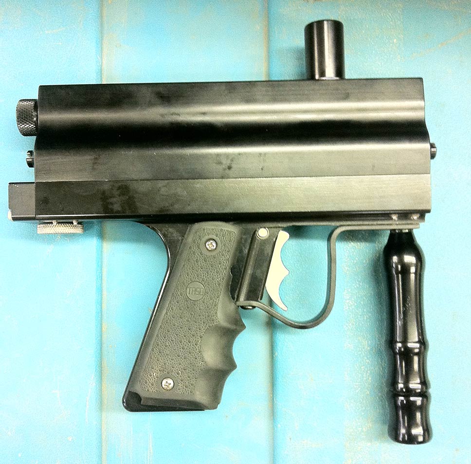 In late 1995, Dr. Edward Hensel, the main designer for PVI’s electronic paintball marker components, created their first working circuit board and prototyped what would become the PVI Shocker. While PVI’s Shocker wasn’t the first electro-pneumatic paintball marker prototyped, it was the first mass produced electro-pneumatic paintgun designed for paintball.
